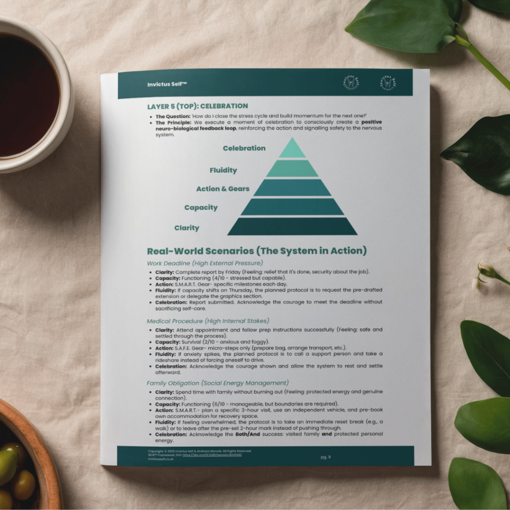 Most self-development fails because it tries to build strategy on top of stress. The ISOS framework flips the script: Regulation First. This kit is your entry point into the system, featuring the ‘Sensor’ audit and the ‘3-Minute Reset’ audio.